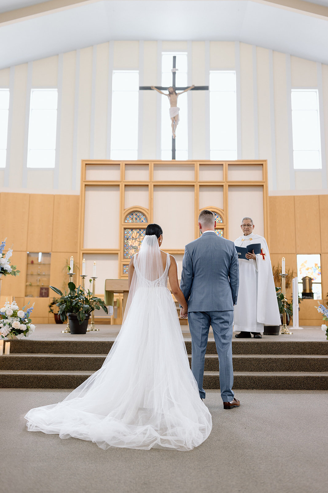 Munzie and Carter's August wedding was the perfect mix between modern and traditional, creating a day that felt timeless and uniquely theirs. The day began with a traditional Catholic Wedding ceremony at the beautiful St. Albert the Great Perish. The couple honoured cultural customs with parental blessings, the draping of the ceremonial veil and the wrapping of the cord symbolizing unity. Sponsors lit candles on either side of the couple, and then Munize and Carter joined to light a unity candle together, honouring the life ahead together. After the ceremony, Munzie and Carter, tok a fun, non-traditional turn and opted for creative wedding party photos and portraits downtown. We headed to Murietta's Bar & Grill downtown where they enjoyed cocktails and some fun bar flash photos. They kept the energy going with a dance party in the limo, setting a lively tone for the night ahead. Their reception at Valley Ridge Golf Course was everything they'd envisioned, starting with a high-energy grand entrance that flowed right into their first dance and cake cutting, letting them get the formalities out of the way so they could relax and enjoy the evening. Just before sunset, we snuck outside for a few golden hour shots before the party really got going. The traditional money dance was a fun, cultural touch that brought everyone to the dance floor, laughing and joining in. The whole room was on their feet, dancing, celebrating and making memories with the newlyweds.